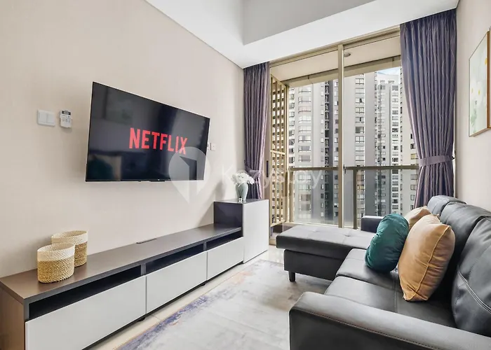The spacious 2-bedroom Agate By Kozystay - Grogol enjoys a prime location and provides easy access to Neo SOHO, a place where guests can shop, set 1 km away. Located 6 minutes on foot from Taman Anggrek Mall, the apartment offers an outdoor pool, a Jacuzzi and a sauna.